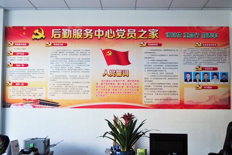 后勤党支部精心制作的展板,内容包括党的根本宗旨,“三会一课”制度,入党誓词,党员的权利和义务,中央近期开展的学习教育活动,以及党支部书记职责,党员风采,学习园地等方面,内容全面丰富。作为保障部门,后勤党支部时刻以“全心全意为人民服务”为最高标准,把学习党的知识和理论,作为党务工作的重要载体和抓手,努力建设富有特色的基层党员精神家园。