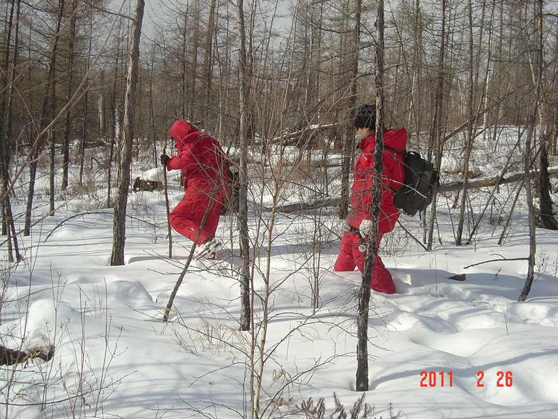 《齐齐哈尔与阿龙山镇—加格达奇地区1:25万区域重力调查》涉及五个区块,施工战线长,其中四个区块均是历史遗留的空白区,条件复杂,环境恶劣。面对难啃的“硬骨头”,能源勘查分院继续发扬“一物”野战军的作风,于大年初八整装出发,开赴东北。为了确保规定时间内完成施工任务,能源分院在仔细踏勘后决定进行反季节施工:冬天进入南翁河、呼中、汗马、扎龙等国家级湿地?;で┕ぷ饕?,夏天则在恩和哈达边境无人区进行数据采集,防火期内转战至辽宁鞍山本溪开展重力调查。在项目多、任务紧、人员相对分散的情况下,能源分院克服了重重困难,前后历经十二个月,圆满完成了两个项目的野外数据采集工作。
