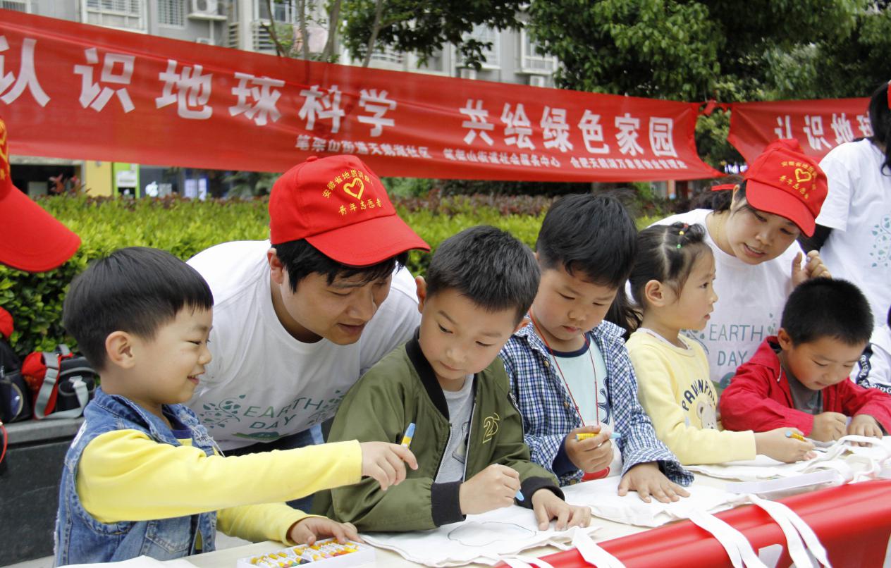 4月19日下午,由安徽省地质调查院和安徽省地质学会青年工作委员会主办,我院、政务区笔架山街道天鹅湖社区、安徽省地球物理学会等单位协办的“认识地球科学 共绘绿色家园”――第48个世界地球日活动在天鹅湖万达广场拉开序幕?;疃醒肓颂於旌嫌锥笆ι?0人,孩子们利用蜡笔在白色环保袋上涂满各类图案,兴高采烈的展示着自己的杰作,让孩子们从小树立爱护地球、关注环保的意识。