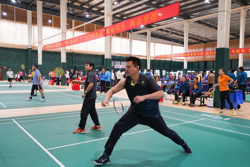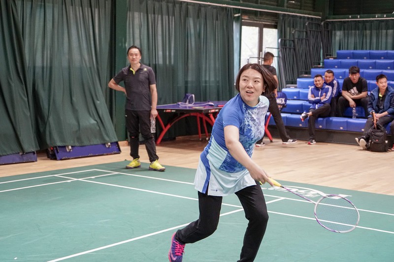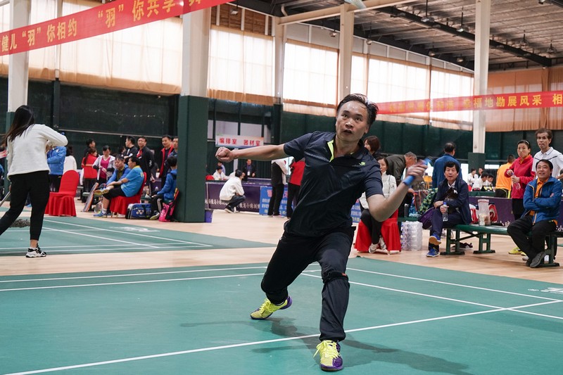 马颖枫(右)、罗贤东(左)参加羽毛球双打比赛