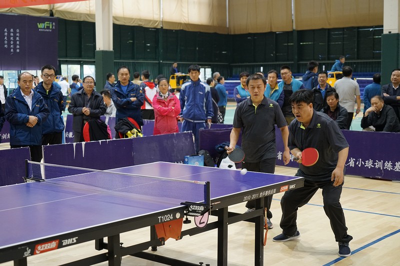 虞永征(左)、吕贺敬(右)参加乒乓球双打比赛
