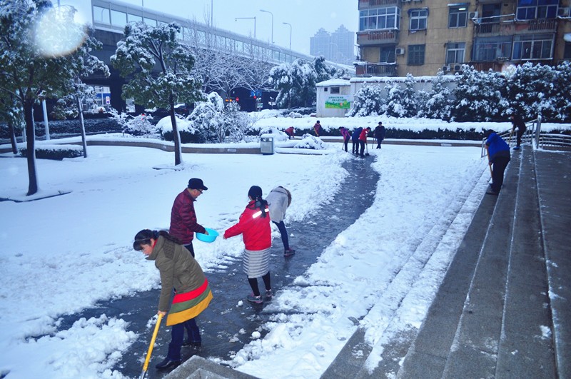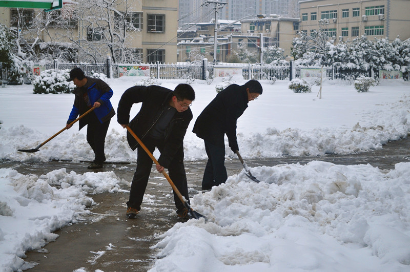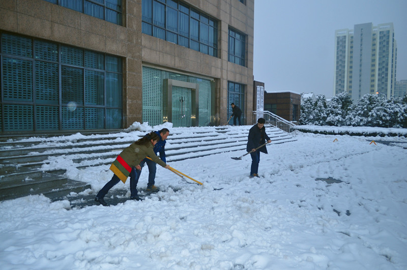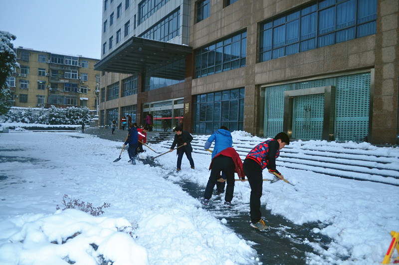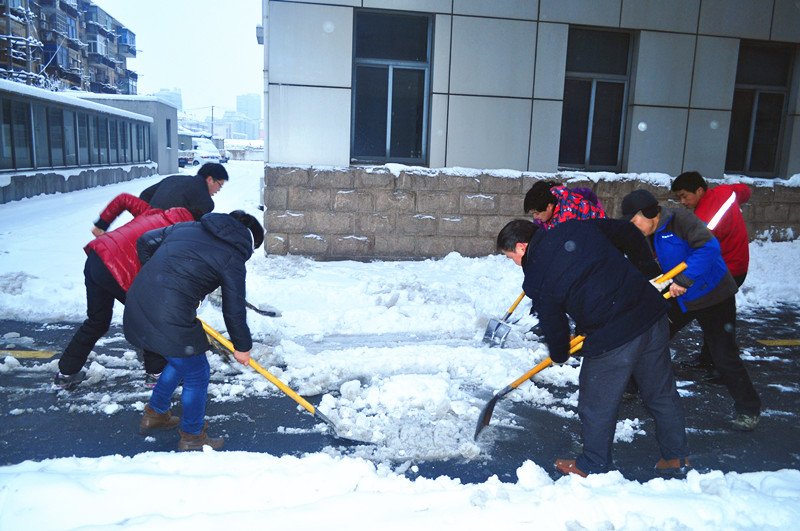 为了确保职工出行安全,1月5日一大早,由院领导许传建、李东海带头、后勤服务中心全体职工及其它基层单位、机关科室职工自发组织清扫单位院内外积雪。大伙儿不畏刺骨严寒,齐心协力,配合默契,铲的铲、推的推、扫的扫,干得热火朝天,不亦乐乎,忙碌的身影构成了一道道亮丽的风景线。