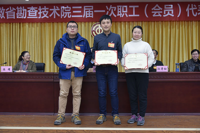 副院长,工会主席陈耀同志代表院二届工会委员会作了题为《围绕中心 服务大局 维护权益 凝心聚力 为开创转型跨越发展新局面努力奋斗》的工作报告。全面总结了院工会五年来的工作成果。报告回顾了五年来,院工会坚持以习近平总书记系列讲话精神为新时期工会工作的指南,充分发挥工会组织在加强民主监督,为发展进言献策、维护职工权益、构建和谐劳动关系、岗位上建功立业、推进改革发展等方面的主人翁职责,连续两次获得省地质工会目标考核责任制先进单位、省地矿局创建幸福地勘优胜单位等光荣称号,多次被省总、省地质工会等授予各种荣誉称号,取得了显著的成绩,得到了院党委和上级工会的肯定,得到了职工的充分信任。