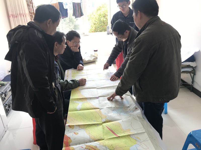 3月20日,省地调中心陆三明、周宇章,合肥工业大学宋传中,省地调院吴雪峰等专家前往宣城市狸桥镇,就电法所承担的地质勘查基金项目《安徽省宣城市荞麦山东部铜多金属矿普查》进行野外现场考察。