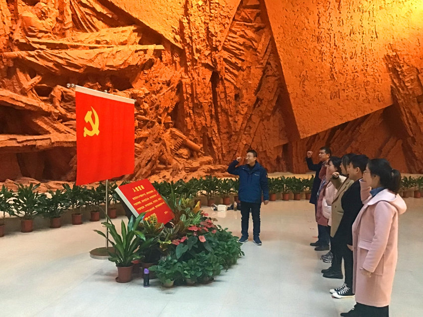 渡江战役纪念馆整体设计气势磅礴,紧密结合渡江的主题,通过对水的灵活运用,再现渡江战役的艰难险阻与解放军万舰齐发勇渡长江的豪迈的英雄气概。党支部成员来到战役领导人群雕前进行合影留念,深深感受五位领导人的运筹帷幄,决胜千里,指挥百万雄师横渡长江天堑的雄才大略与宏伟气度。随后,各位党员走进馆内进行参观,以时间为序,重温渡江战役前后的英雄事迹与故事,被革命先烈们强烈的爱国主义精神、顽强拼搏精神与不怕困难勇往直前的革命精神所震撼。随后,大家来到党旗下,肃立注目,举起右手庄严宣誓,重温入党誓词。