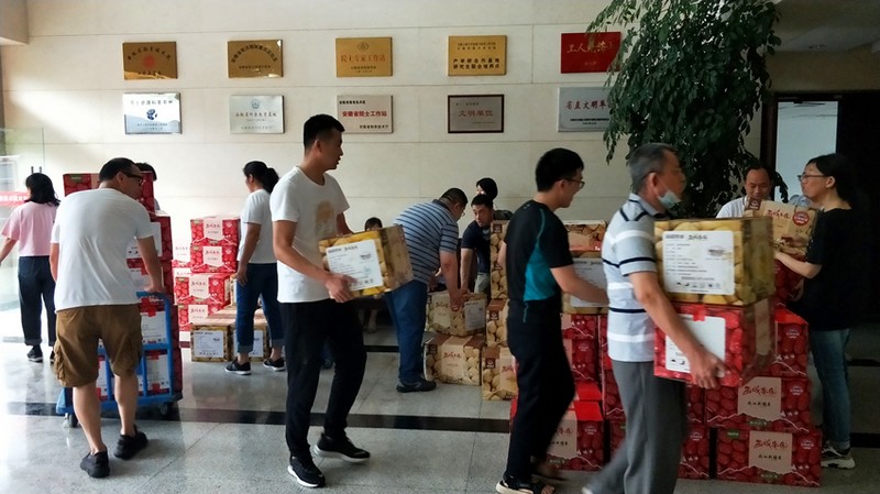 6月16日,我院工会组织职工自愿认购新疆和田地区皮山县贫困群众生产的668箱红枣、核桃等特色农产品,总价款93520元,通过消费扶贫,传递爱心、助力脱贫。(党办)