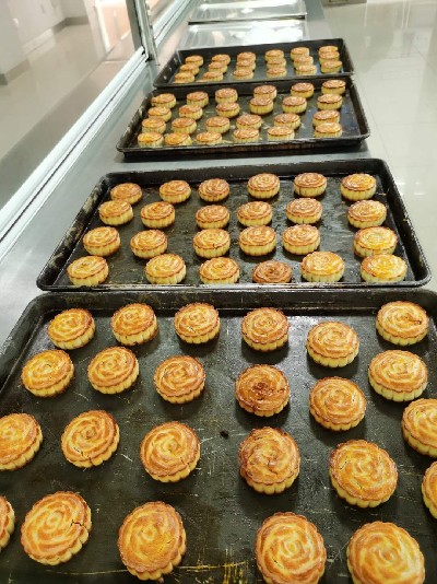 现场,食堂工作人员准备好食材和模具,大家带上口罩和一次性手套,在黄山大厦葛总和食堂面点师小江的指导下,压皮,包馅,按压,大家认真学,仔细做,每个步骤从生疏到熟练,再到最后的有条不紊。大家一边做一边请教,现场其乐融融。当一块块,一盘盘的月饼慢慢成型,当烤箱里飘出阵阵香味,真的好有成就感!