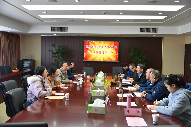 合肥市文明办行业指导处徐冠军、缪岚岚,院党委委员、党办主任蔺国栋,院办公室主任卢罡,院党委秘书、党办副主任张孟姝参加交流座谈。(党办)