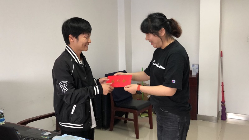 工会副主席郭佳为奖章获得者送上慰问金,详细了解他们在工作生活中的需求,感谢他们为我院的发展作出的贡献,鼓励他们带动其他年轻技术人员积极参加各类劳动技能大赛,为我院争得更多荣誉。