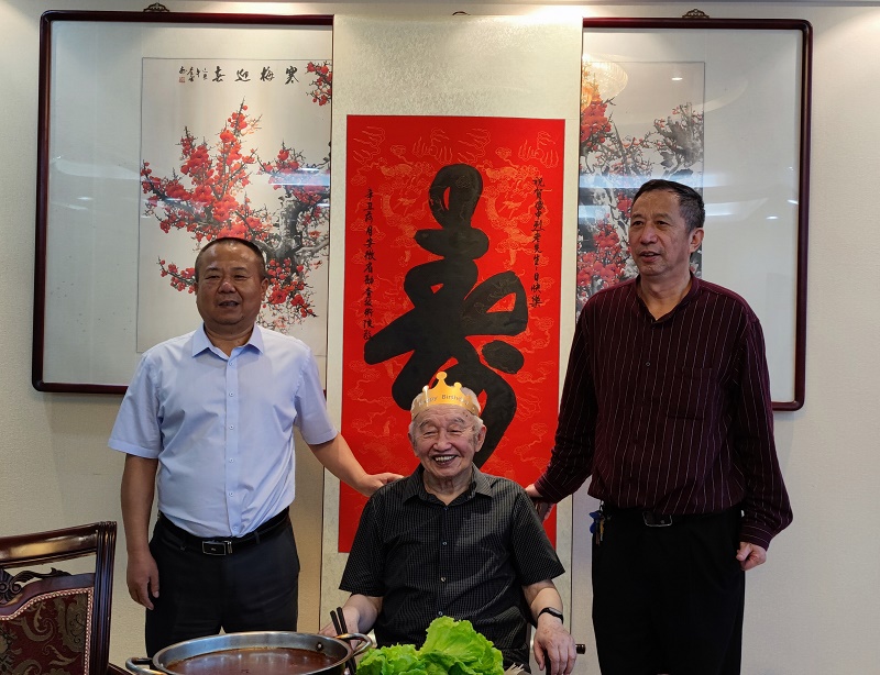 6月18日,院党委委员、副院长汤正江,省优秀专家汪青松,院副总工程师、物探分院院长程培生等人共同探望省自然资源厅专家盛中烈教授,并向他祝贺87岁生日。