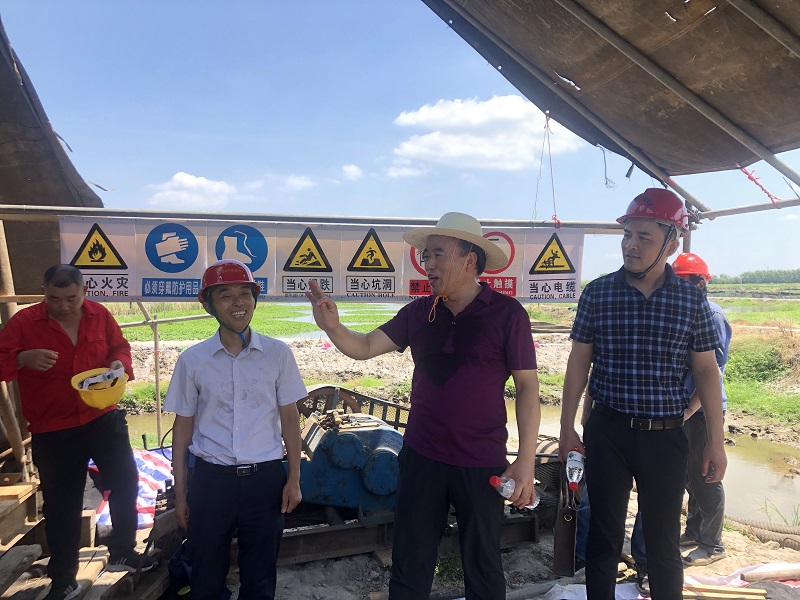 8月15日上午,院党委委员、纪委书记陈勇、院党委委员、副院长何家国、院首席专家汤正江赴物探分院无为西湾项目进行水文孔开孔检查。