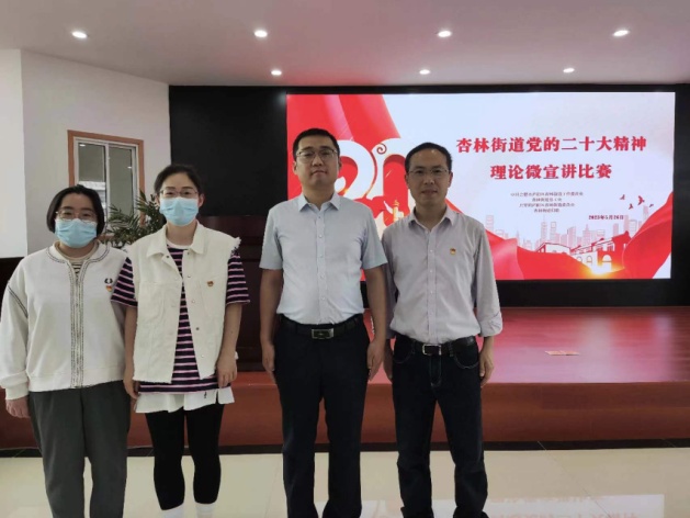 5月26日,为学习贯彻党的二十大精神,深入开展学习贯彻习近平新时代中国特色社会主义思想主题教育,我院积极参加杏林街道工委举办的二十大精神宣讲比赛,信息中心党支部选送延海涛代表院参赛,支部书记陈雷、党员王秋璇、陈媚等三名同志参加活动。