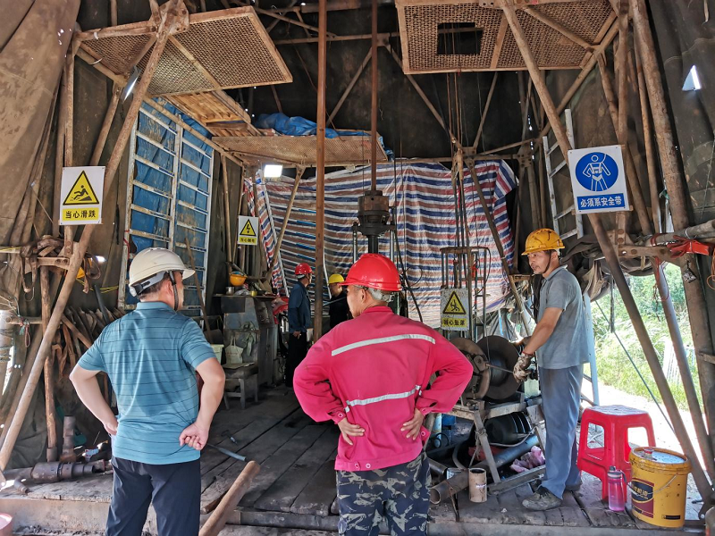 在听取项目组汇报后,何家国仔细查看钻探施工现场,查阅班报表,他充分肯定一线工作人员克服酷暑高温、坚守岗位的敬业精神,以及高效推进项目进程的责任感,并提出三点建议:一是要落实安全生产责任,提高安全防范意识,切实做好防暑降温、防雷电以及应对极端天气等安全生产工作;二是要加强各方协调,保证项目高质量进程;三是要做好钻探收尾工作,按绿色勘查相关要求,做好钻探场地原地恢复工作。