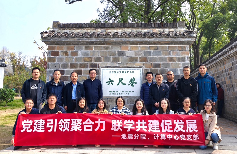 为弘扬中华优秀传统文化,深化精神文明建设,10月29日上午,计算中心党支部、地震分院党支部赴桐城市开展“党建引领聚合力 联学共建促发展”主题党日。院领导熊强青、卢罡参加活动。
