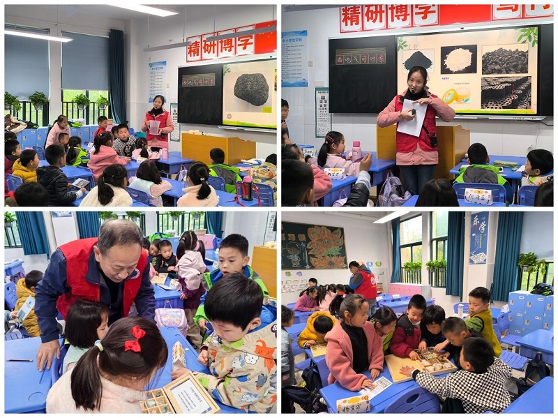 11月19日下午,院科普基地赴合肥高新区梦园小学教育集团天柱路学校一年级(4)班开展地学科普活动,进一步弘扬和传播科学家精神,普及地质科学知识。