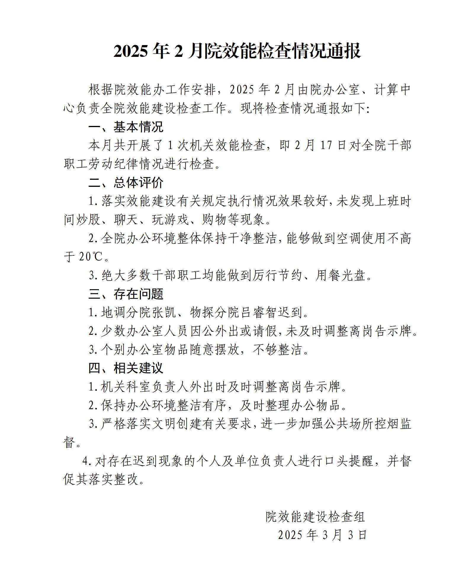 2025年2月效能检查情况通报